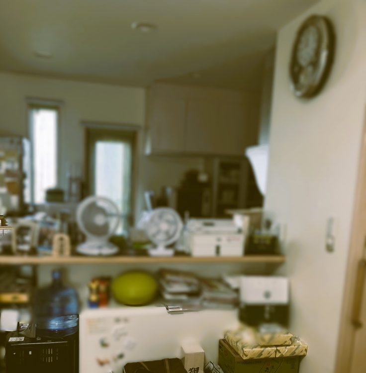 リビングは旦那様の居室、キッチンには収納スペースととホームエレベーターを設置しました。