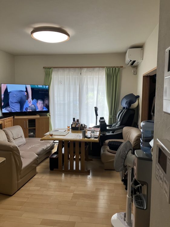 置き型の家具が大きな面積を占めていたリビング。車いすで移動するにはとても不便でした。